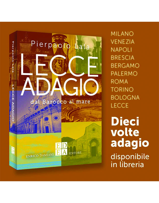 Il volume "Lecce Adagio" sarà presentato sabato 29 novembre alle 18:00 alle Officine Culturali Ergot di Lecce, martedì 2 dicembre alle 18:00 alla Libreria Liberrima di Lecce, mercoledì 10 dicembre alle 18:30 alla Libreria Palmieri di Lecce e giovedì 11 dicembre alle 18:30 nella Distilleria De Giorgi di San Cesario di Lecce.